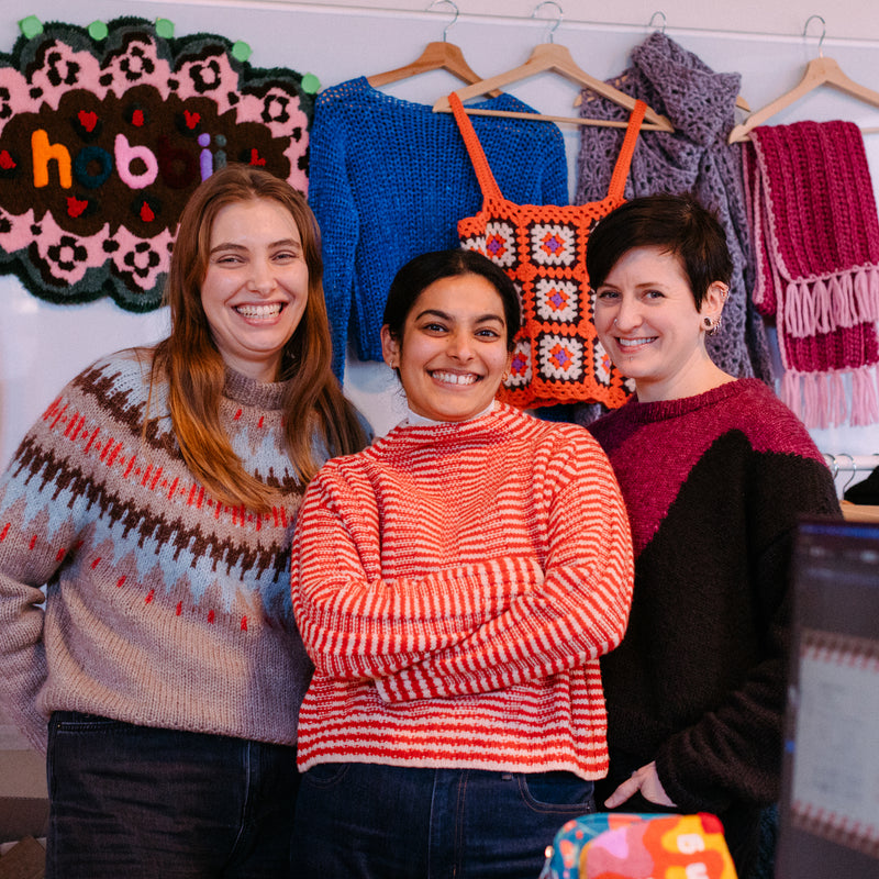 Sif, Sabina ja Kat kuuluvat tuotetiimiimme, joka kuratoi upeaa lankojen ja tarvikkeiden kokoelmaamme sekä huolehtii, että kaikki tieto saadaan verkkokauppaan niin, että asiakkaamme tietävät tarkalleen, mitä ostavat. Heillä on tarkka silmä laadulle, tunnulle, värille, kestävyydelle ja niille pienille yksityiskohdille, jotka todella merkitsevät projektin valmistuessa, heidän alan asiantuntemuksensa ansiosta. He ovat osa tiimiä, joka muokkaa kaikkea sitä, mitä tulet käyttämään luomuksissasi – kauniista langasta neulo- ja virkkauskoukkujen settiin, projektipusseihin ja älykkäisiin tarvikkeisiin, jotka pitävät kaiken sujuvana, järjestyksessä ja iloisena käyttää.