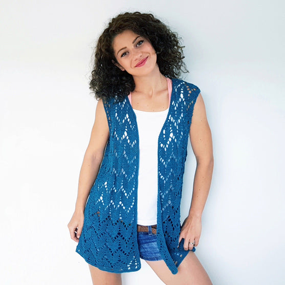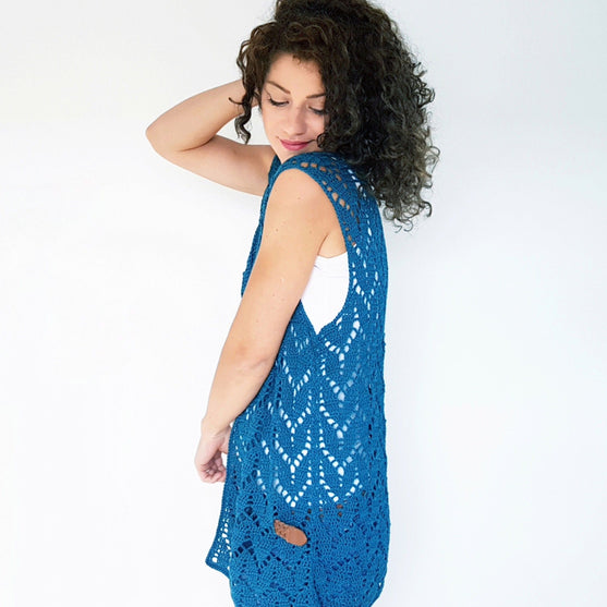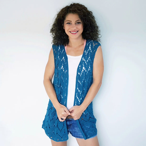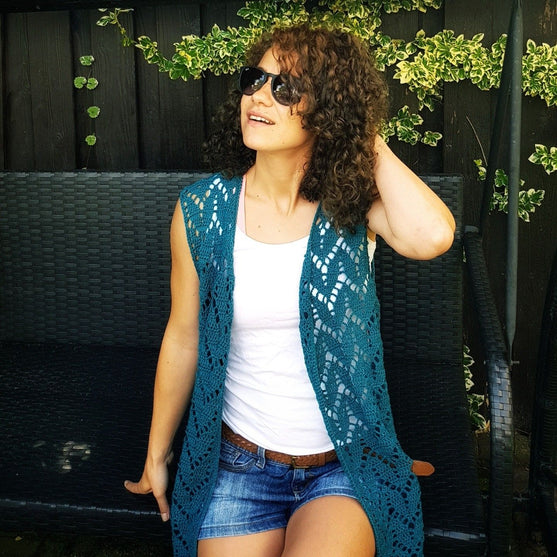 Leaf Me On-Liivi on kaunis ja kevyt kesäliivi. Sen voi yhdistää kaikkeen, shortseista mekkoihin. Ohjeesta on saatavilla 3 kokoa: XS, S ja M.