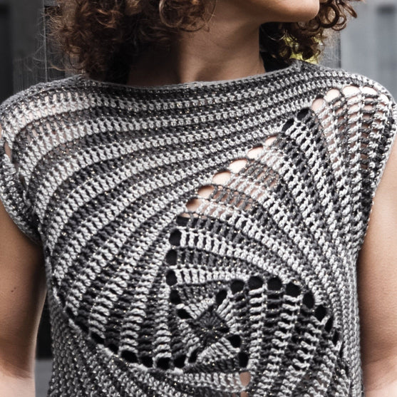 Kaunis Kaleidoskooppi-paita on hypnotisoiva niin virkatessa kuin ulkomuotonsakin osalta! Paita virkataan Rainbow Glitter-langalla vaalealla ja tummalla värillä, joka tuo värit kauniisti esiin korostaen kuviota. Paidan voi virkata kahdeksassa koossa XS-koosta 4XL-kokoon - Sitten eikun aloittamaan. Valitse juuri ne värit joista pidät.